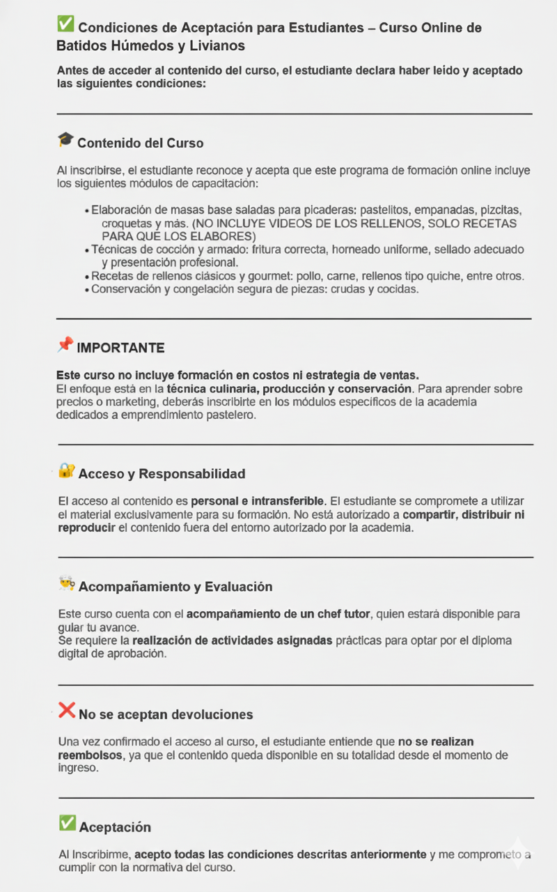 Costo $1.00 Contenido Base de pasteleria Lesson 1 of 1 within section Contenido. Debe inscribirse en este curso para acceder a los contenidos del curso.